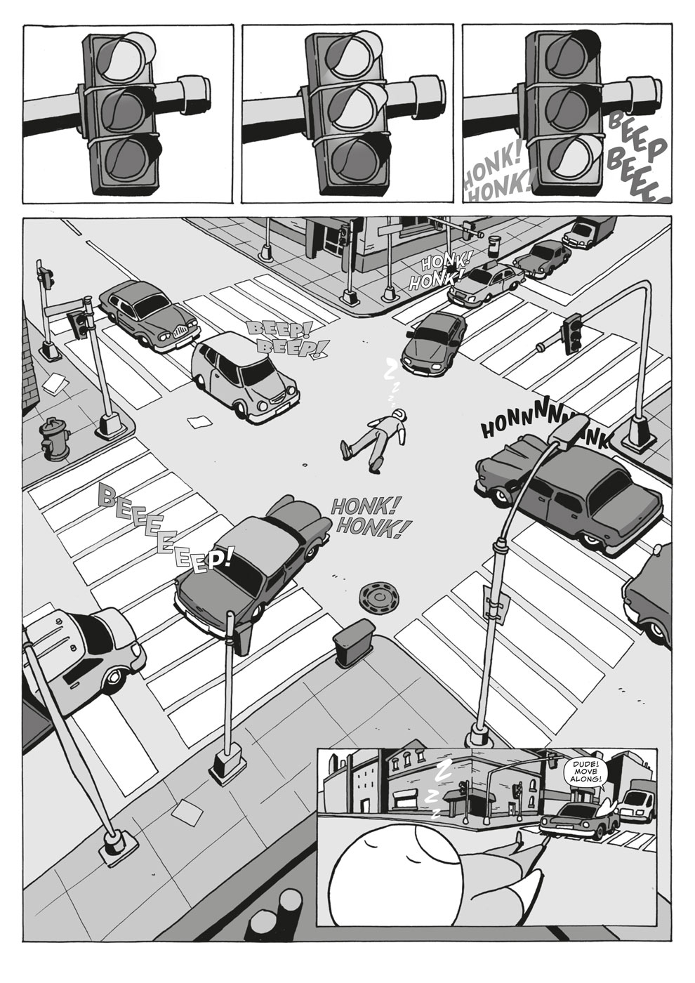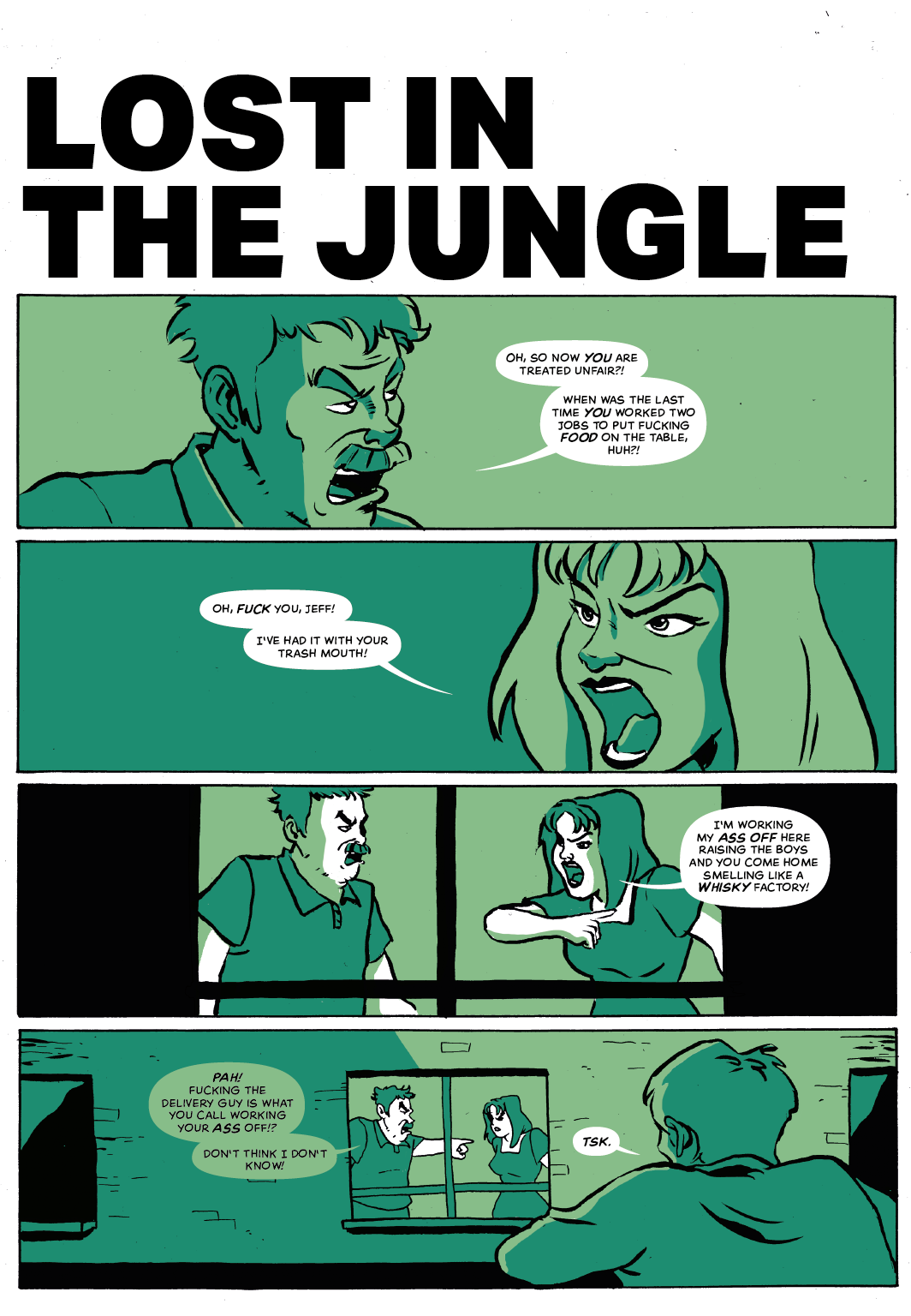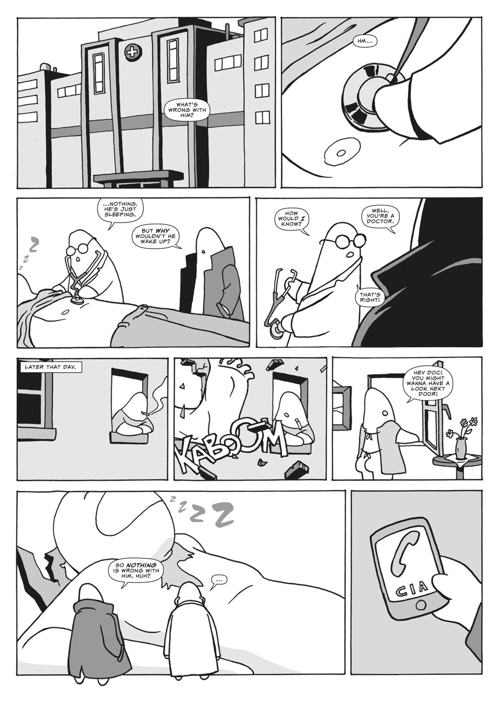 Short comic about a man who doesn't stop growing and poses a threat to mankind.