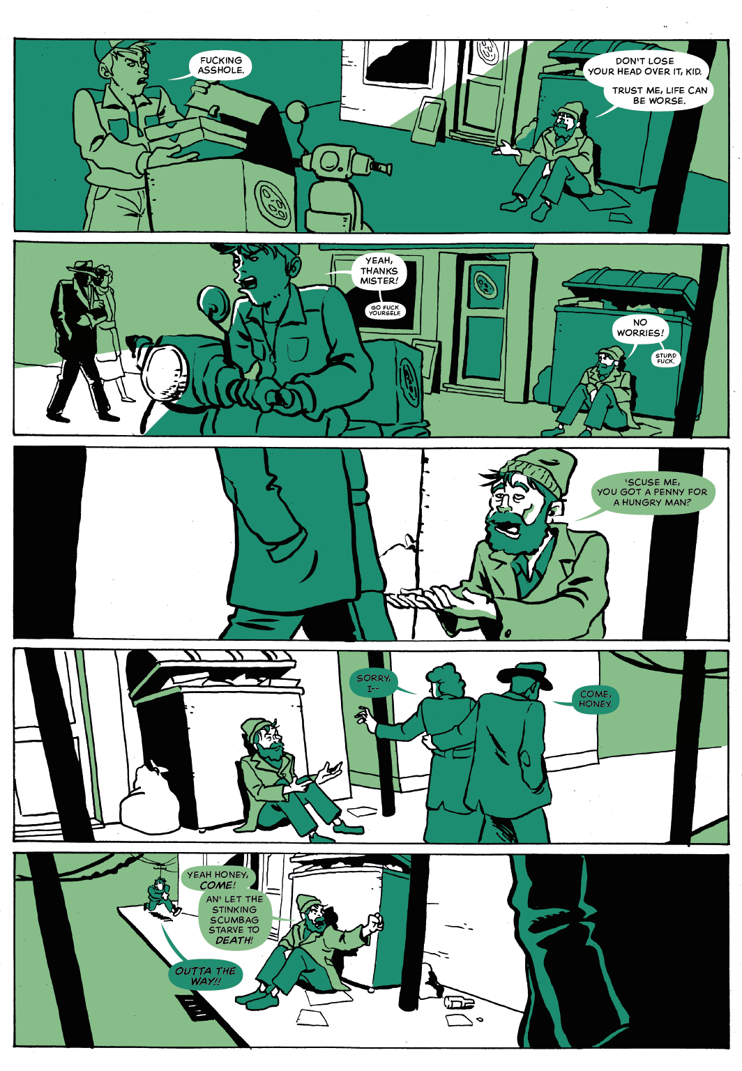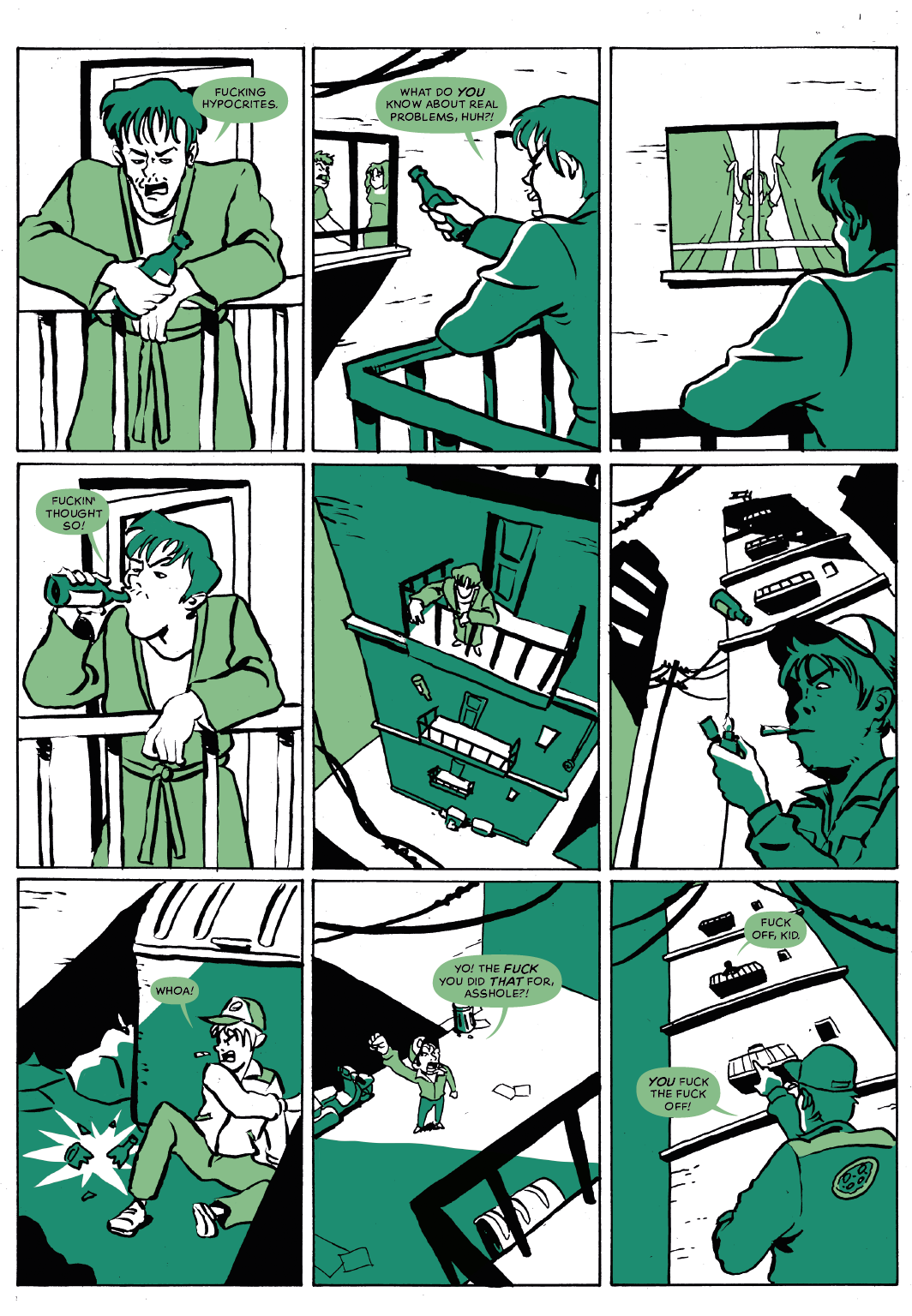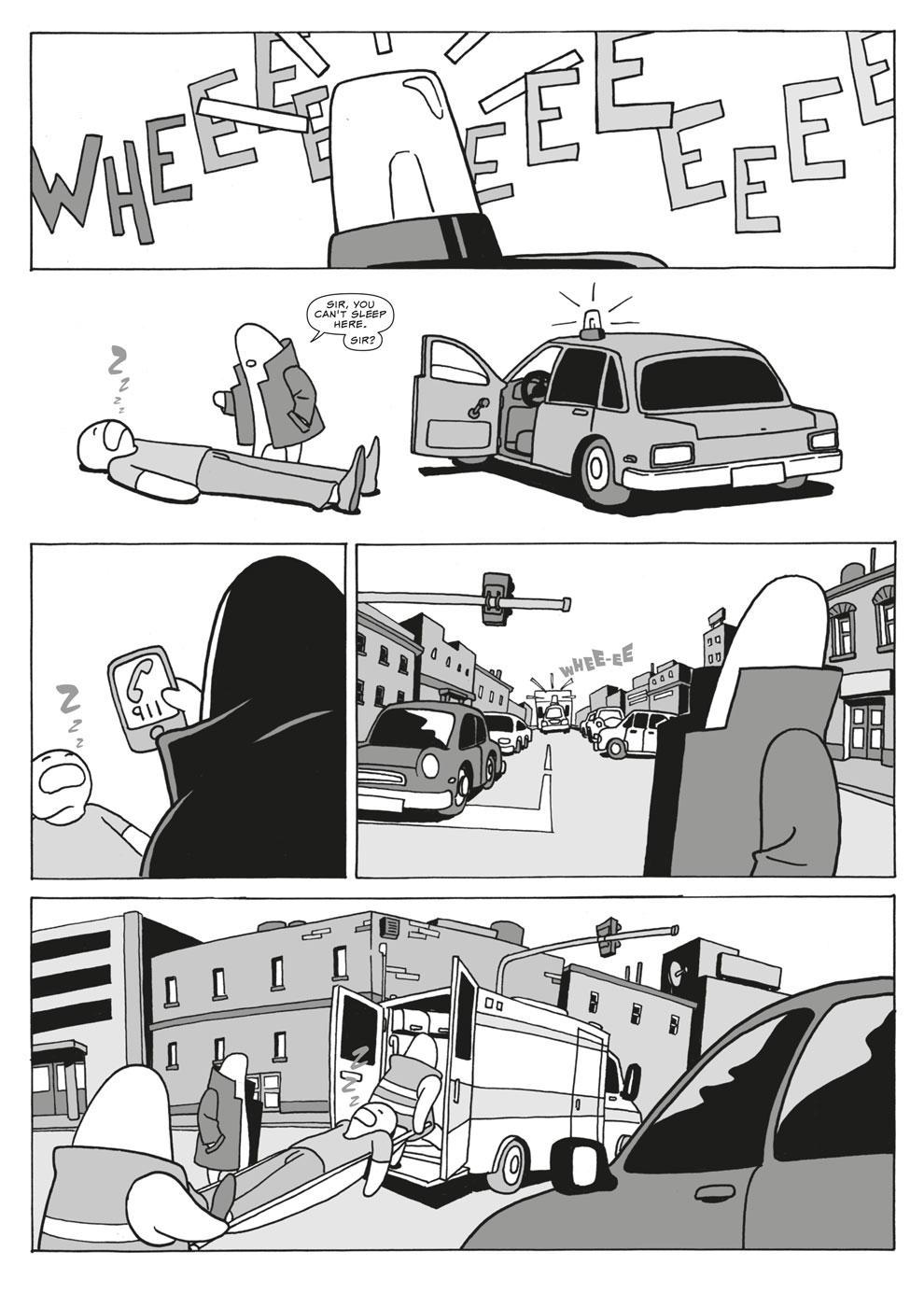 Short comic about a man who doesn't stop growing and poses a threat to mankind.